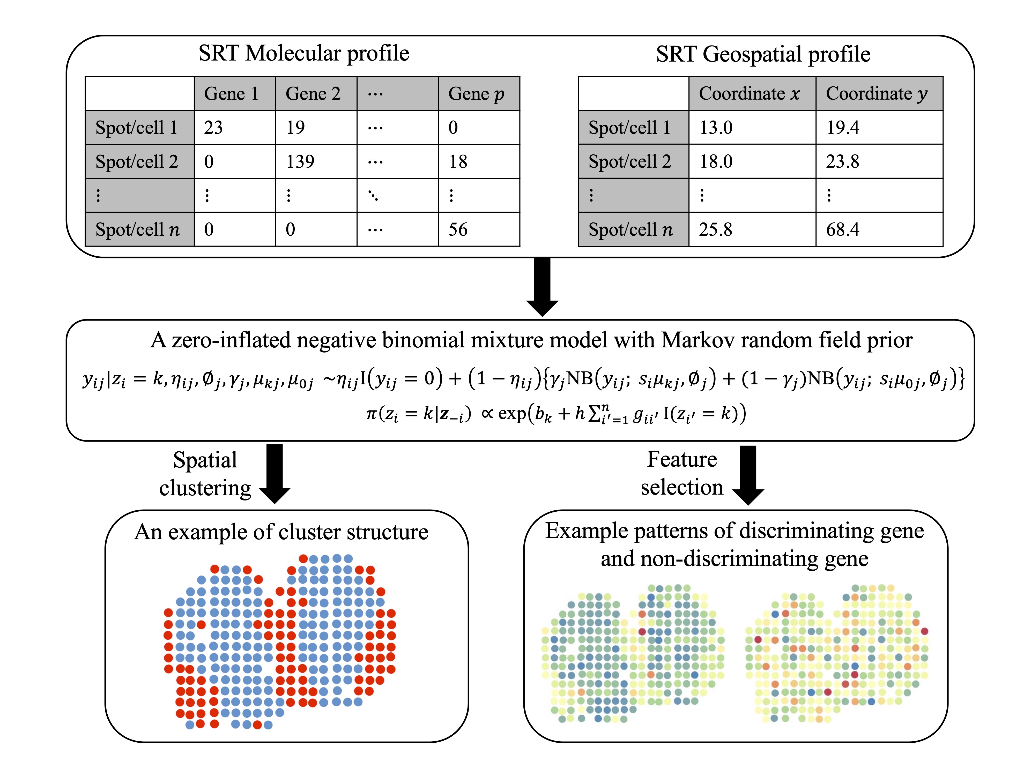 An interpretable Bayesian clustering approach with feature selection for analyzing spatially resolved transcriptomics data H. Li, B. Zhu, X. Jiang, L. Guo, Y. Xie, L. Xu, and Q. Li Biometrics, 2024, Volume 80, Issue 3, ujae066 |
